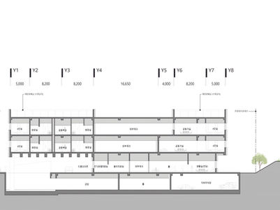 대상지를 둘러싼 4면의 환경은 모두 성격이 다르다. 각 면이 마주하고 있는 환경에 대응하기 위해 매스를 분절하고 분절로 생긴 사이 공간은 외부 공간을 안으로 끌어들인다.